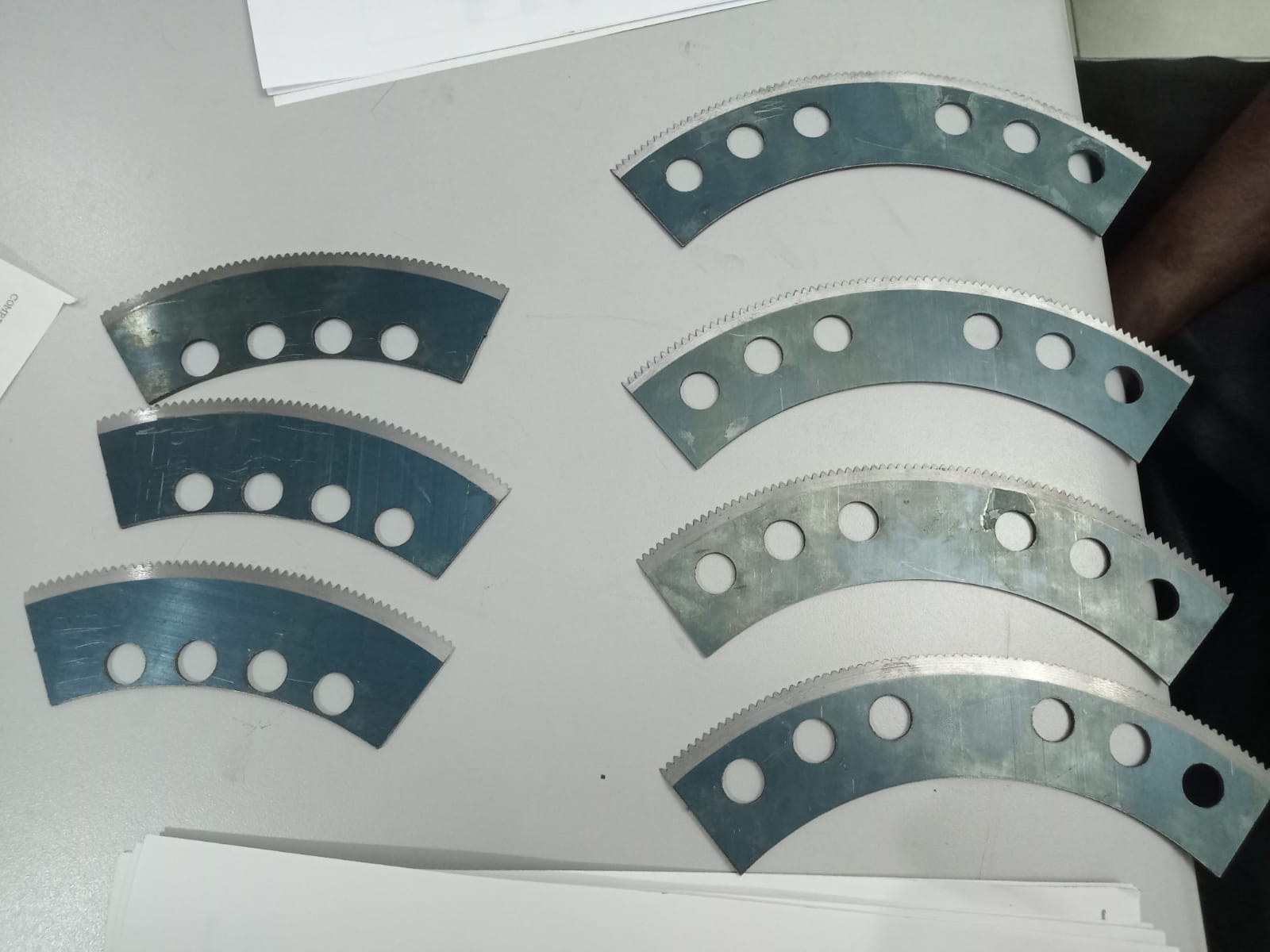 Cuchillas de cualquier tipo, ya sea para cizallas, guillotinas para cortar papel, cartón, lámina, acero inoxidable, para molinos de cualquier tipo, para cortar plástico, pet, cuchilas para molinos de plásticos reciclables, afilado de cuchillas hasta 4 metros, cuchillas circulares, cuchillas rectangulares o por diseño.